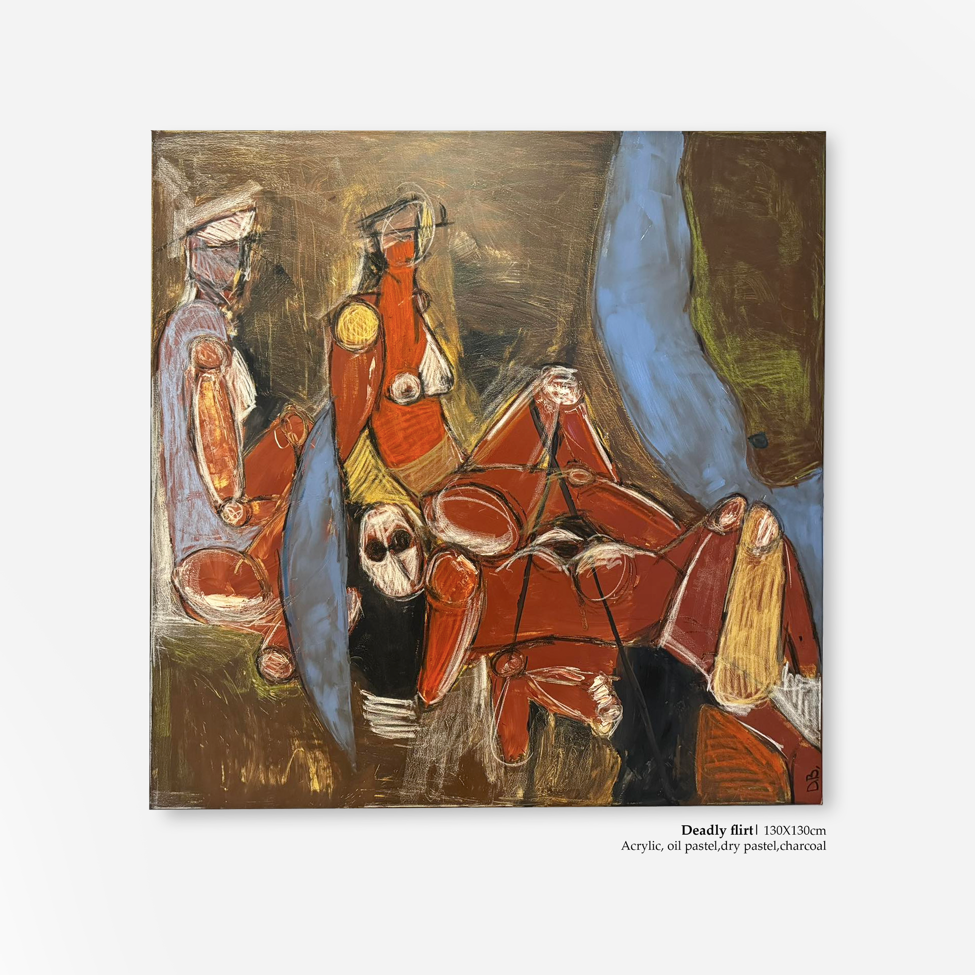 The painting titled "Deadly Flirt" is a vivid depiction of a toxic relationship, expressed through a poetic lens.