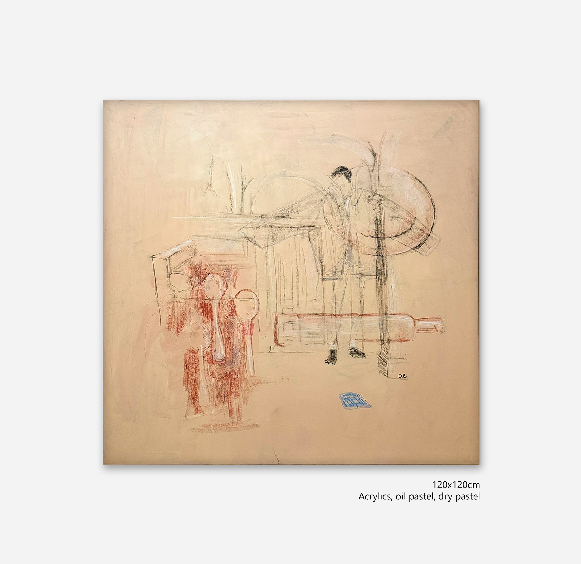 Maison Notes is a layered composition exploring fragments of domestic life, memory, and cultivated elegance. Architectural outlines, loosely drawn figures, and refined everyday objects appear as fleeting impressions rather than fixed forms. The work balances structure and impermanence, allowing sketches to surface and dissolve within a muted, warm-toned background.