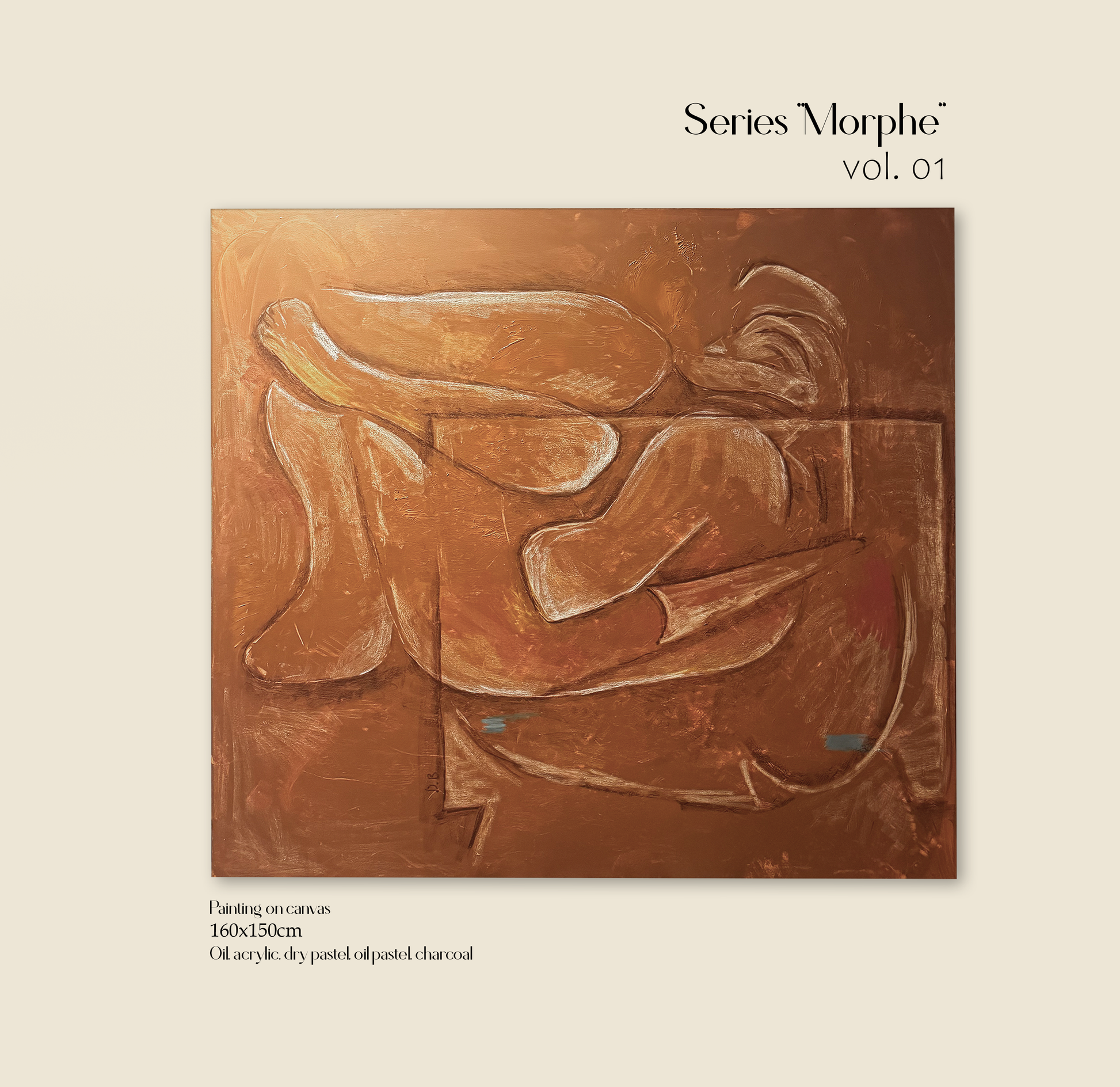 "Morphe" is a series of large-scale abstract figurative paintings that explore the shifting boundaries between body, gesture, and memory. Inspired by primal forms, raw movement, and the materiality of paint itself, these works feel as though they’ve been unearthed rather than painted – carved out of earth-toned silence, or glimpsed through the veil of a dream.