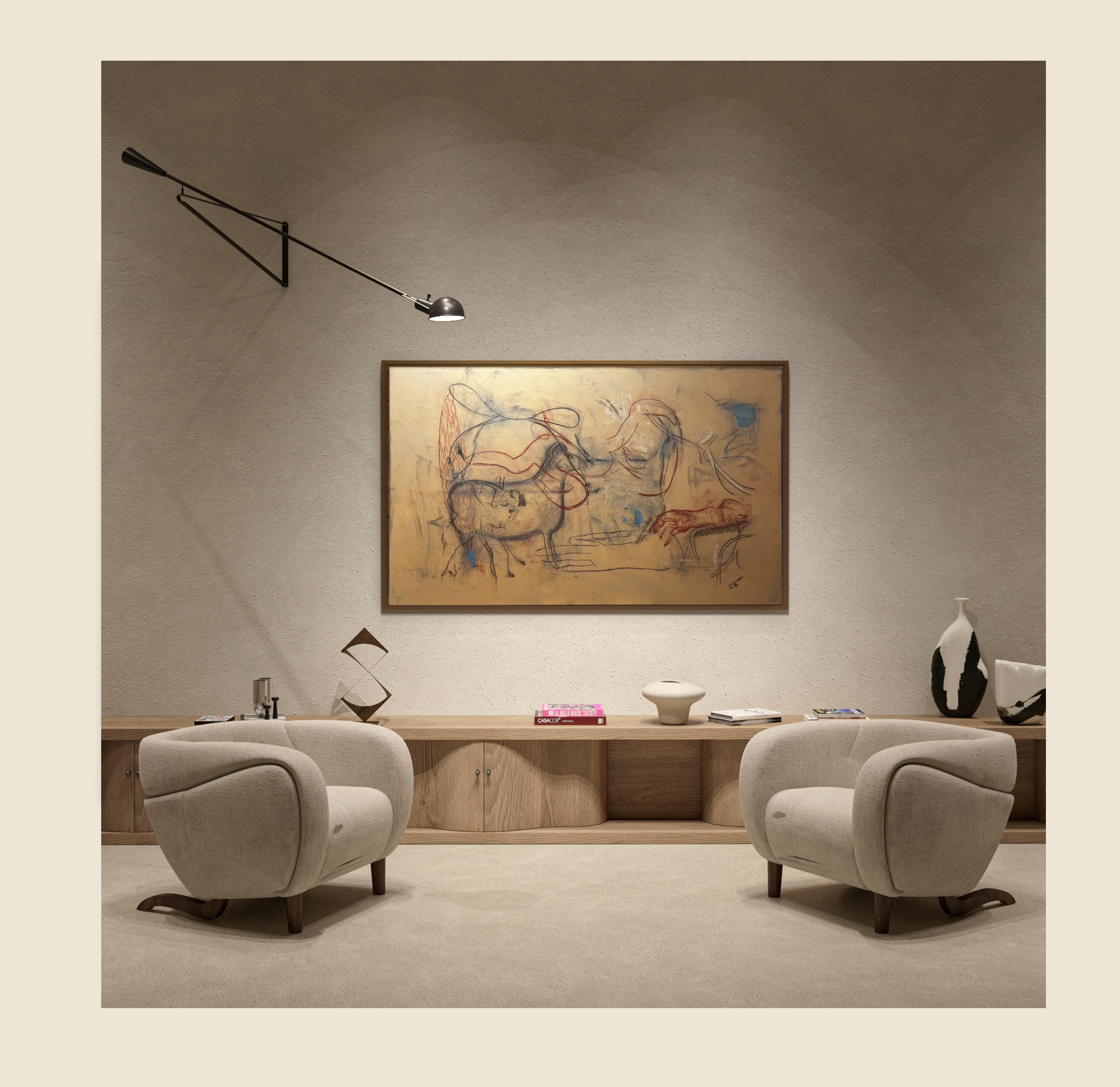 The warm ochre background feels like earth – a place where everything grows – while sudden flashes of red and blue act like pulses of life. The figures, part human, part animal, are never fully defined; they blur and shift, as if to suggest that within each of us lives more than one nature.