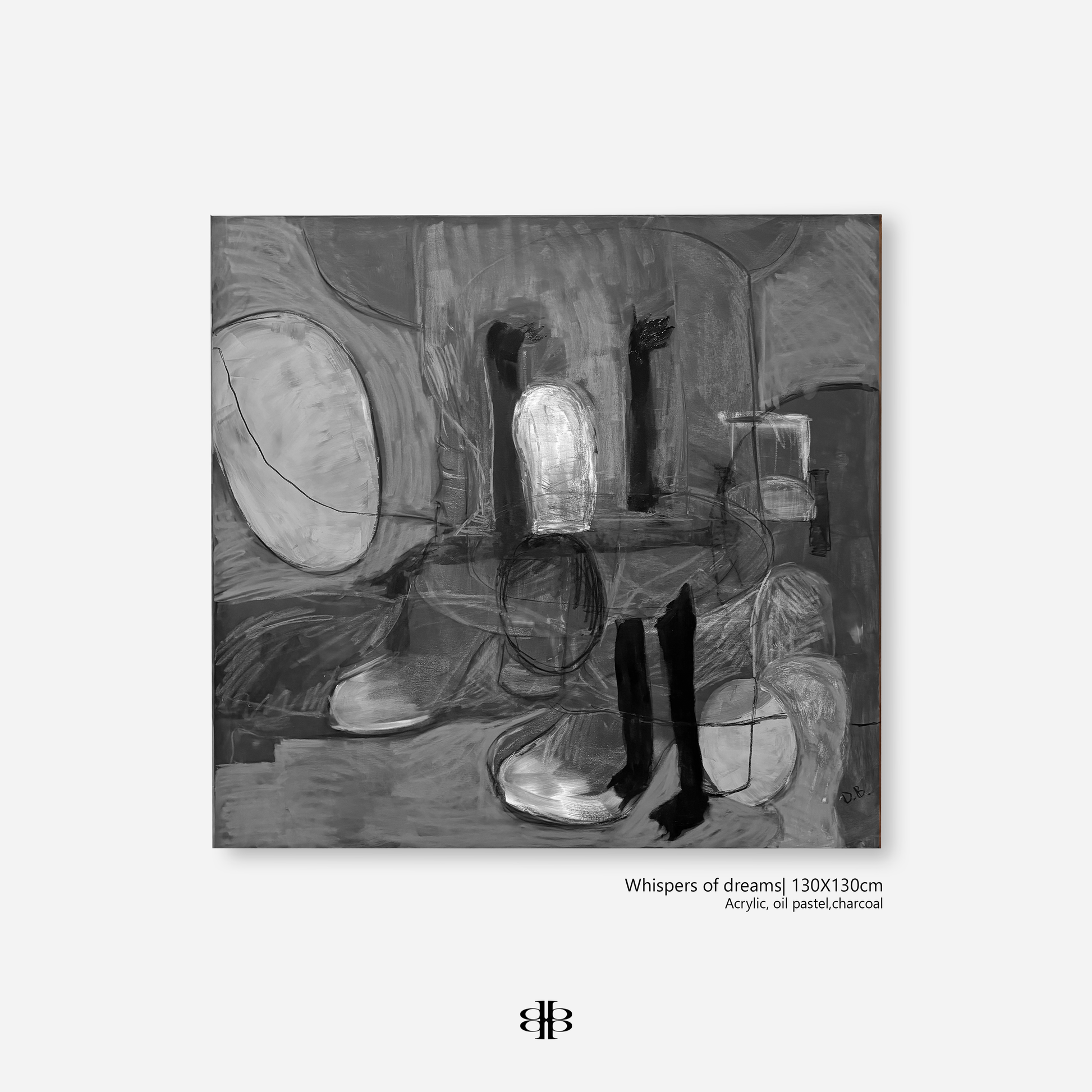 The use of both dark and light colors suggests the contrast between clarity and confusion, representing the whispers and suggestions that dreams provide. The painting captures the elusive and multifaceted essence of dreaming, where ideas are intertwined and messages are subtly conveyed through symbolic imagery.